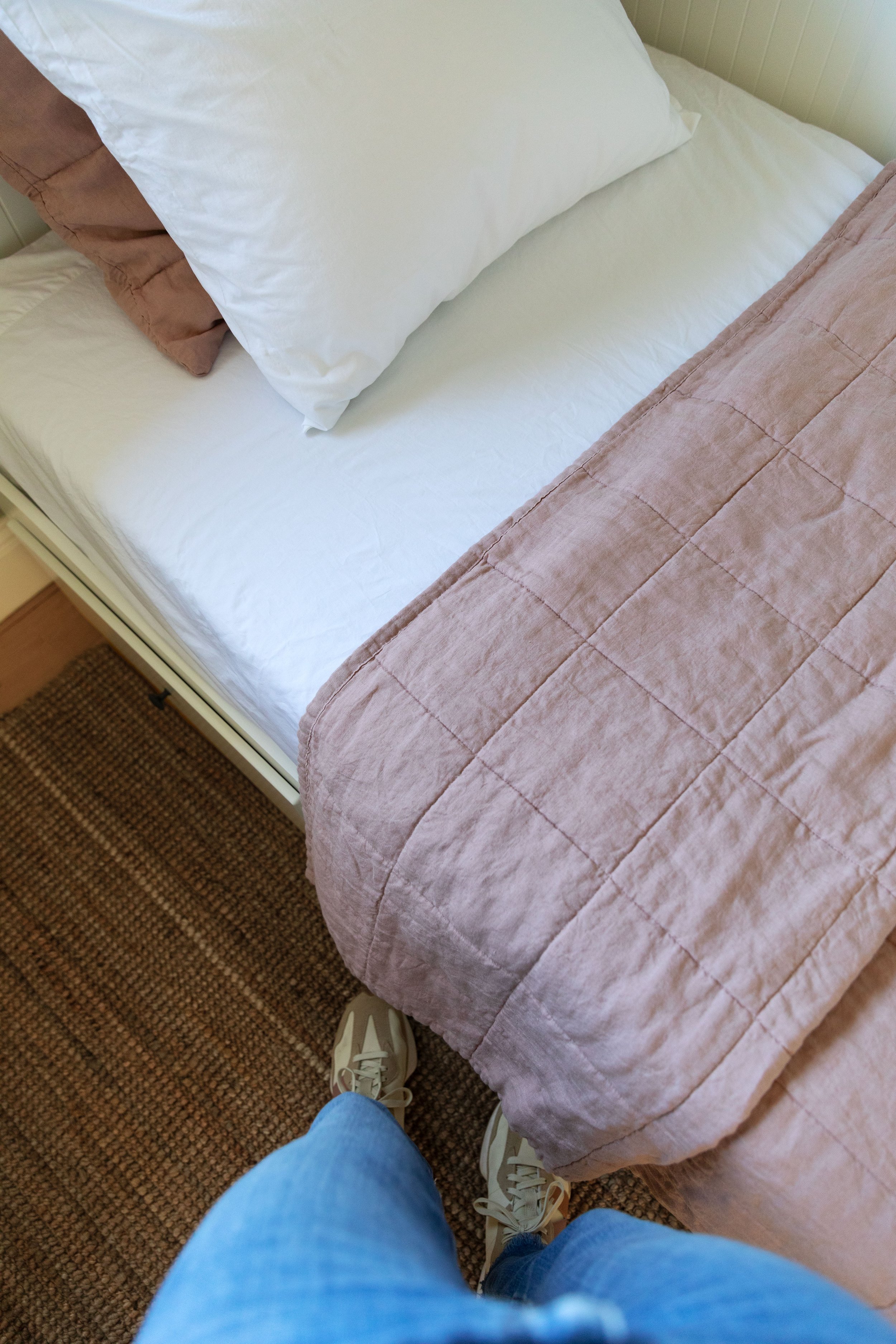 Added bedding to the ‘green room’ (that pink linen quilt!)