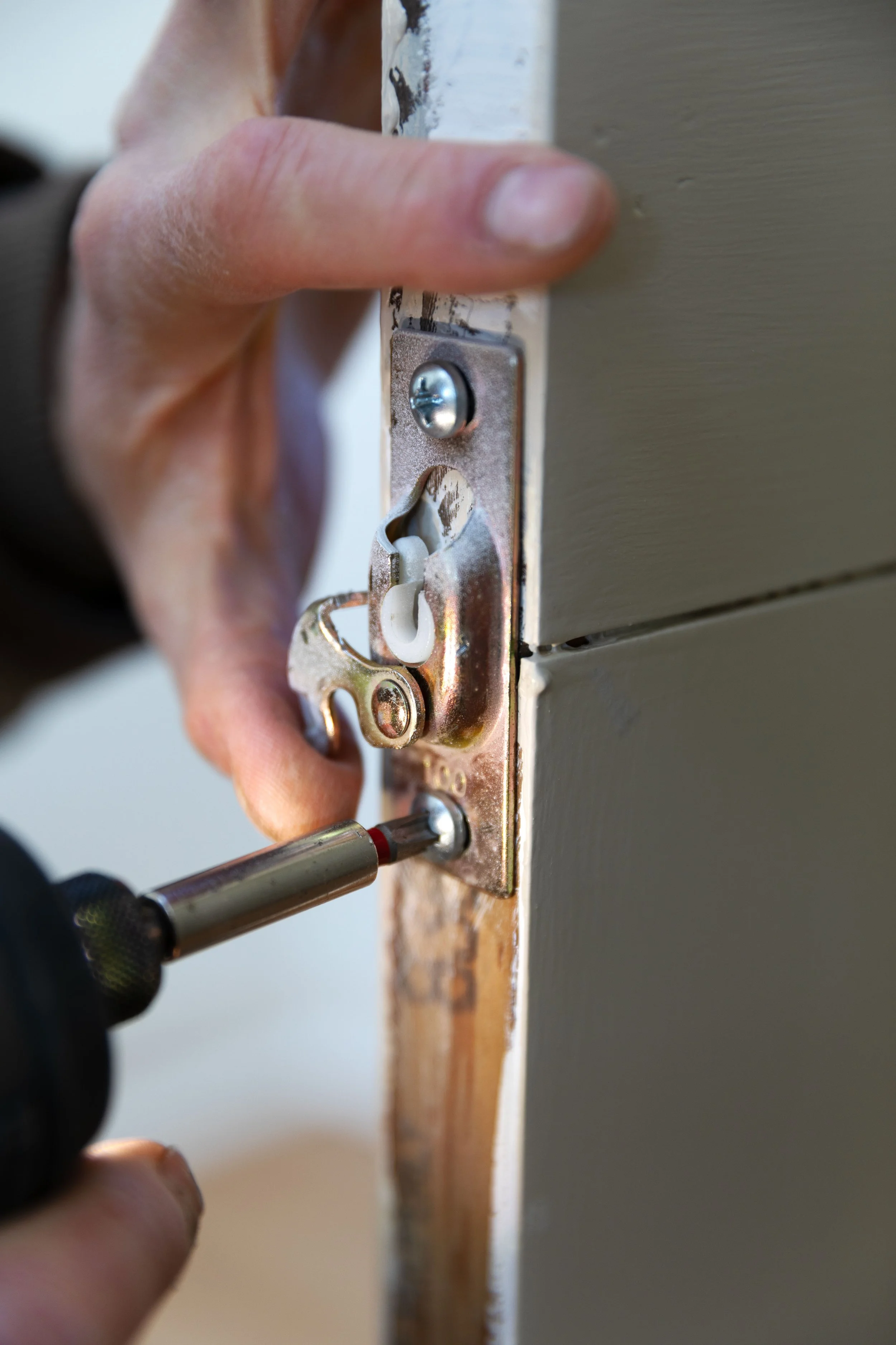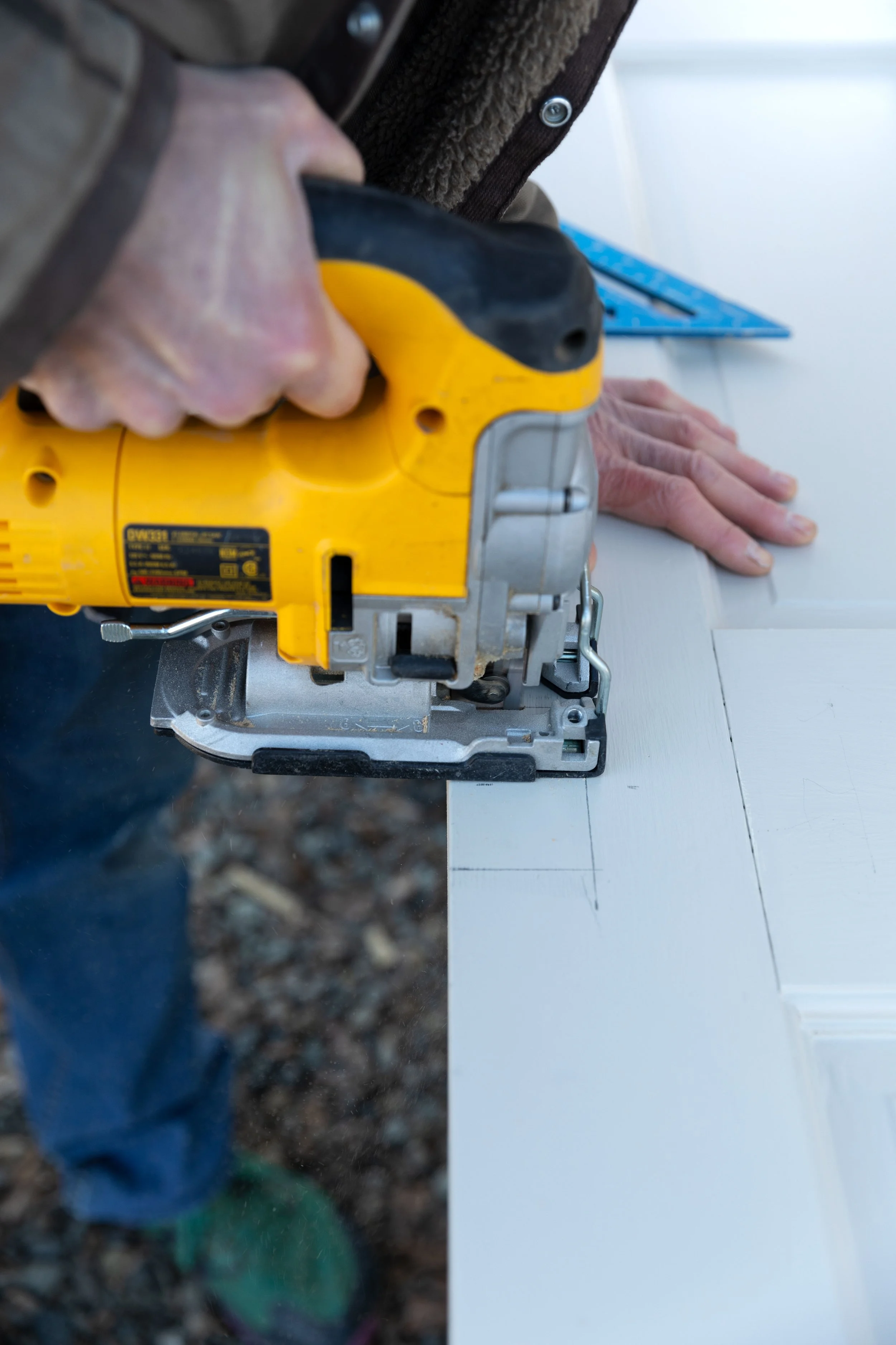 Once the cutout was done, we brought the door back inside to add the hardware. It was easy to install, just requiring a couple of screws, and it was done in less than an hour.