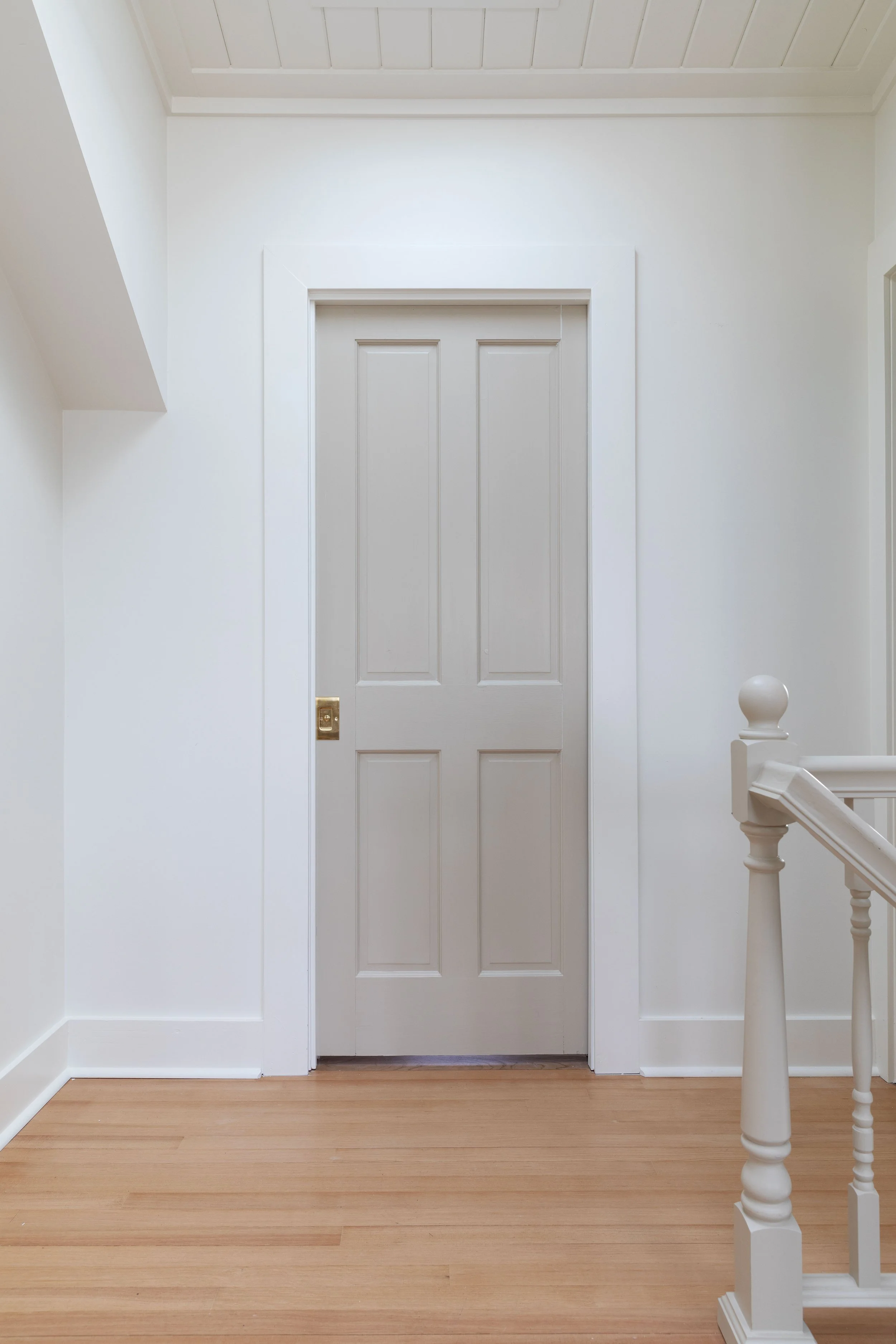 We painted the door in Stony Ground by Farrow & Ball (color matched by Shwerwin Williams) in satin finish. Highly recommend opting for a high quality paint, since doors get so much use.
