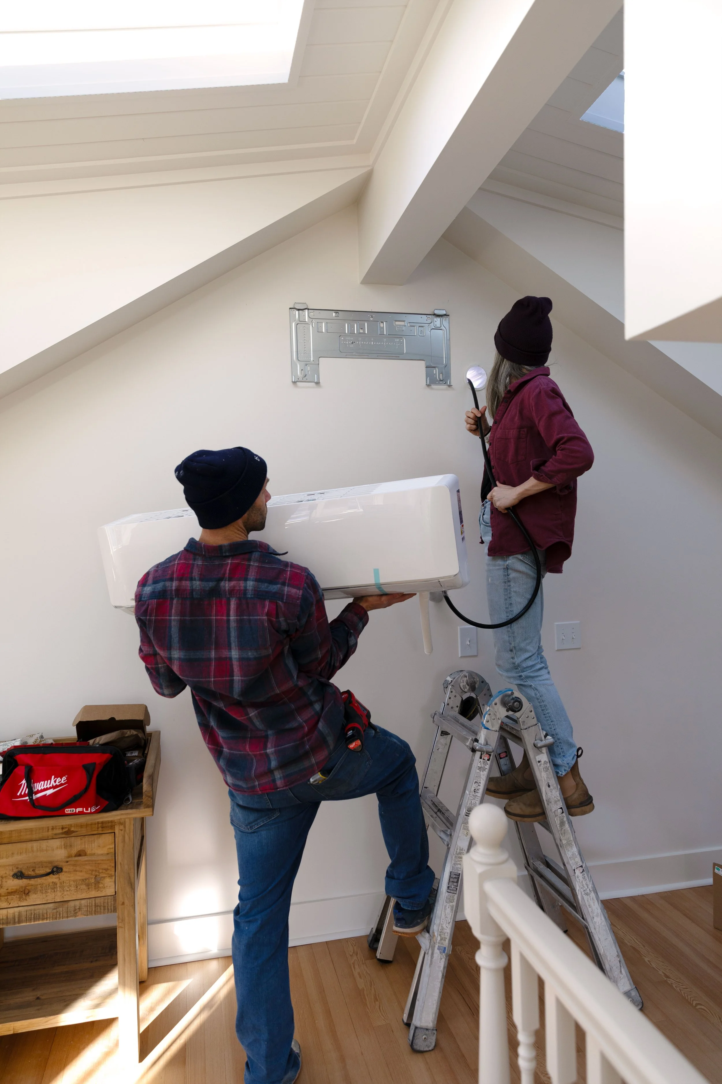 When we built the upstairs living room at the Poplar Cottage, we knew we needed a way to keep it cool in summer and cozy in winter. With no existing ductwork and a tight budget, a ductless mini split felt like the best option. After some research, we landed on a Mr. Cool DIY 5th Gen 12K BTU Mini-Split Heat Pump. It’s specifically designed to be DIY-friendly, comes pre-charged with refrigerant, and doesn’t require hiring an HVAC pro - all good things for budget-conscious DIYers like us ;)