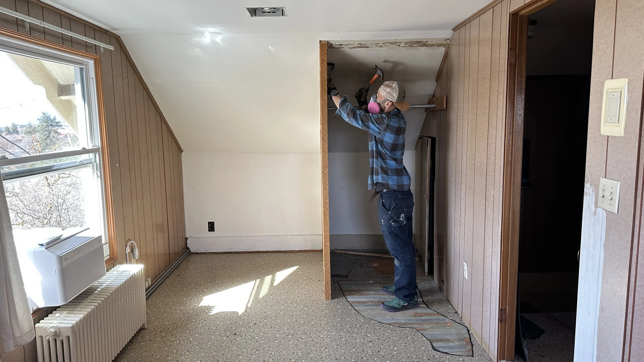 That’s the view from the top of the stairs. Cozy, right?! Before I share more progress, let’s back up and talk about the constraints we were working with in this space. Because there were many!